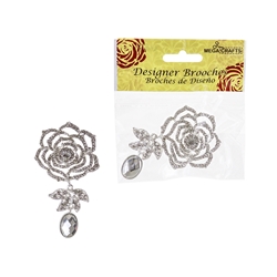 Sparkling Rhinestone Medium Floral Designer Brooch - L